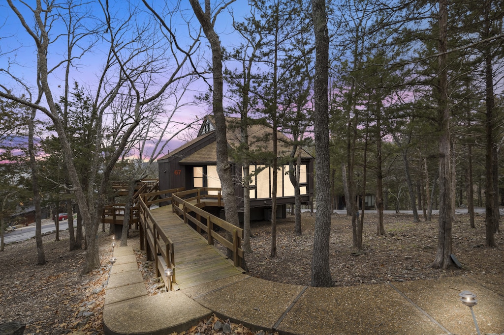 The lake awaits at the Tree Top Hideaway! Nestled in the trees inside the highly sought after Tree Top Village, this incredibly unique octagon shaped home is ready to make your getaway one to remember. Staying at the Treetop Village gives you access to three pools, including one indoor pool with hot tub and sauna! The village is in a PRIME location on Horseshoe Bend near the Lodge of Four Seasons, the Bagnell Dam Strip, golfing, and tons of waterfront bars and restaurants!