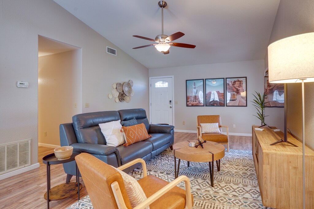 Discover where the Sonoran Desert meets modern comfort at this vacation rental in Peoria, AZ! Located in the Garden Point community, this 3-bed, 2-bath home makes it easy to explore everything the area has to offer. Start your morning by soaking in the sunshine with a warm cup of coffee, then spend your afternoon scoping out must-sees like State Farm Stadium and Thunderbird Conservation Park. Later, return for a dip in the community pool or cozy up by the Smart TV for a movie night.