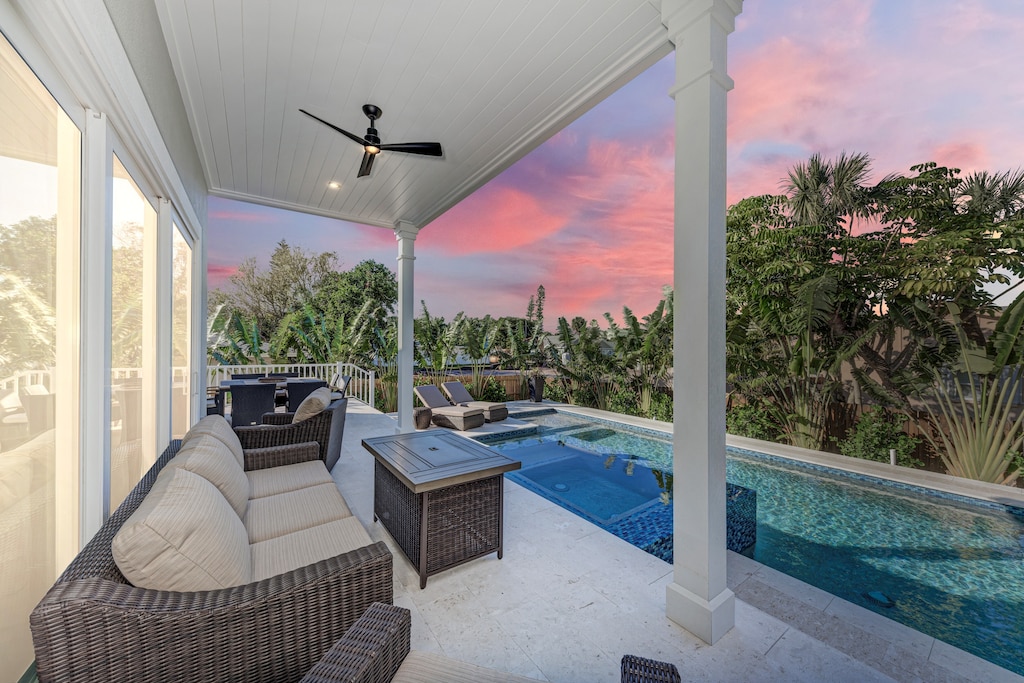 bathroom home only 2-minute walk to the beach with a large heated pool, spa,