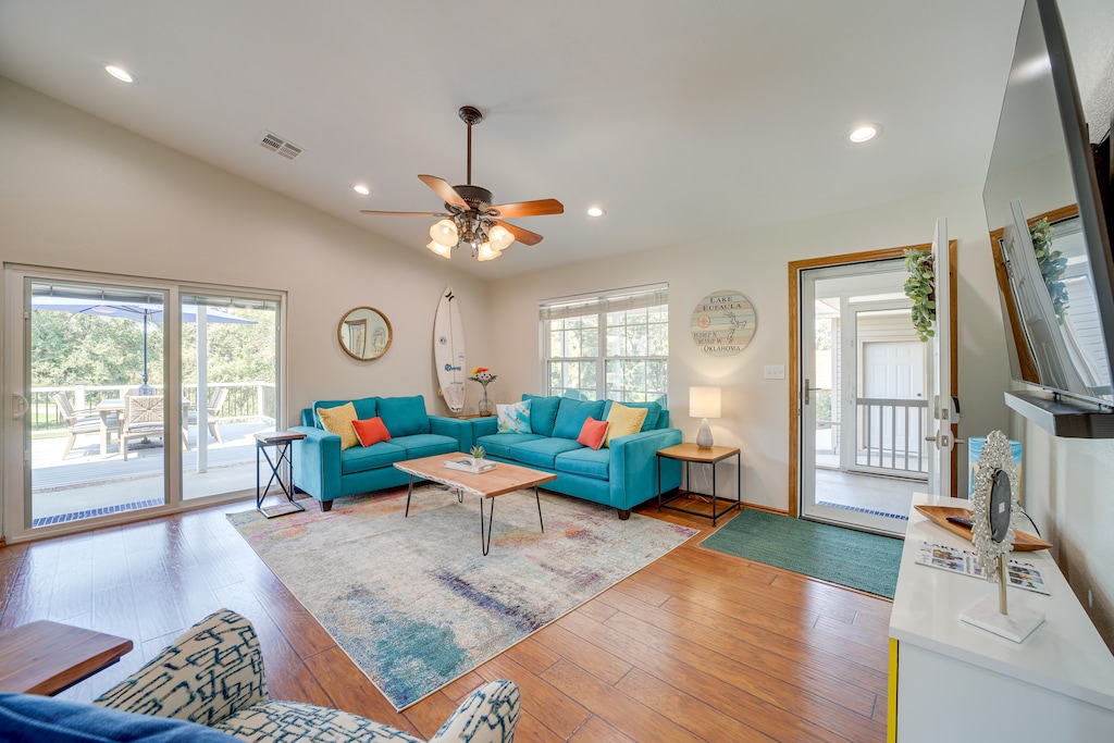 Discover the best of eastern Oklahoma when you book this 4-bedroom, 2-bathroom vacation rental in Eufaula. The colorful interior and open-concept layout create a vibrant and welcoming atmosphere. Enjoy your morning coffee on the deck while taking in the serene views or fire up the grill for a delicious barbecue. Located a short drive to Lake Eufaula State Park and Xtreme Cove Marina, this rental is the perfect base for exploring the lake. Unwind and make lasting memories in this charming house!