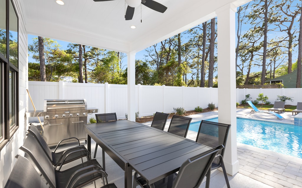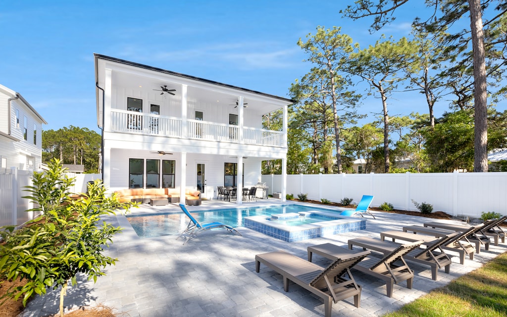 Seagrove sets the stage for the stunning vacation home, Serenity of Seagrove. The brand-new 5-bedroom, 51/2-bathroom house is a delightful blend of modern luxury and classic Southern charm.