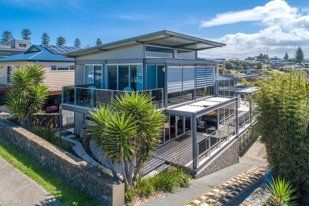 Tasman Views has a great central location for those who want to be within easy walking distance of all amenities. The house is a modern beach house with amazing views over the ocean. Perched on the Gerringong headland, this striking home is a desirable destination for couples, family beach holidays, surf trips and golf breaks.