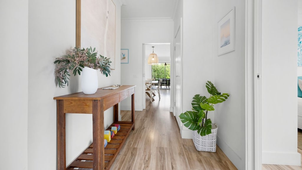 This light filled 3 bedroom house has 2 living areas, a covered deck with BBQ and a large secure backyard. Situated in a quiet street only a 10 min walk to the front beach, shops and cafes of Rye village.