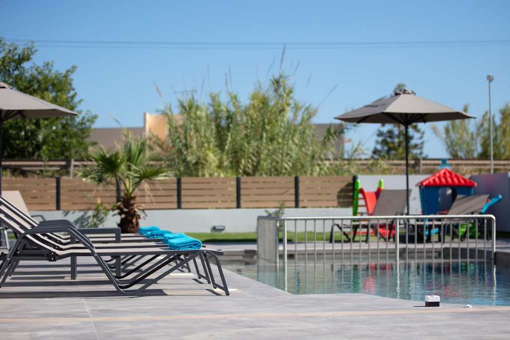 Offering ample grounds and providing an ample outdoor living space, this holiday home is perfect for soaking up the cretan scenery. The pool outdoor area is equipped with premium sun beds and poufs, so you can enjoy all day long the summery feeling! Cherish your cooked suppers at the outdoor dining area with BBQ facilities (gas) , offering a stylish al fresco space for enjoying an evening tipple as the sun sets over. Kindly note that the villa is located close to the main Cretan road, which makes it an ideal holiday home for those who wish to explore the hidden gems of the island. Ideal for a car-free holiday break, as you may find anything you may need within walking distance ( beach, bus stop, restaurants, bars, shops, mini markets and many more).