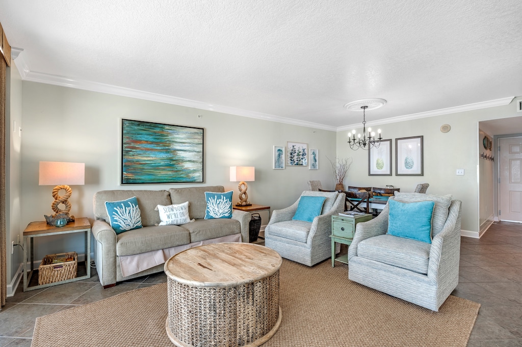 Experience a slice of paradise in this stunning 2-bedroom, 2-bathroom condo on the 10th floor of Perdido Towers in Perdido Key, Florida. This low-density building with only 33 units offers a serene escape from crowded beaches and pools, allowing you to fully unwind on your beach vacation. Situated on a pristine stretch of the Gulf Coast, the condo boasts luxurious amenities, including a spacious living area with comfortable furnishings, a large flat-screen TV, and sliding glass doors leading to a covered beachfront terrace. From the patio, you can take in breathtaking views of the Gulf of Mexico without leaving the comfort of your vacation home.
