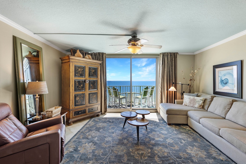 Experience the perfect beach escape in this stunning 3-bedroom, 2.5-bathroom condo on the 9th floor, where you’ll be greeted with panoramic views of the Gulf of Mexico’s emerald waters and sugar-white sands. Whether you’re relaxing in the living room or waking up in the master bedroom, floor-to-ceiling windows and sliding doors let the breathtaking scenery in. The spacious beachfront balcony offers ample seating for enjoying your morning coffee or unwinding with a glass of wine, and if you’re lucky, you might catch a spectacular Blue Angels flyover!