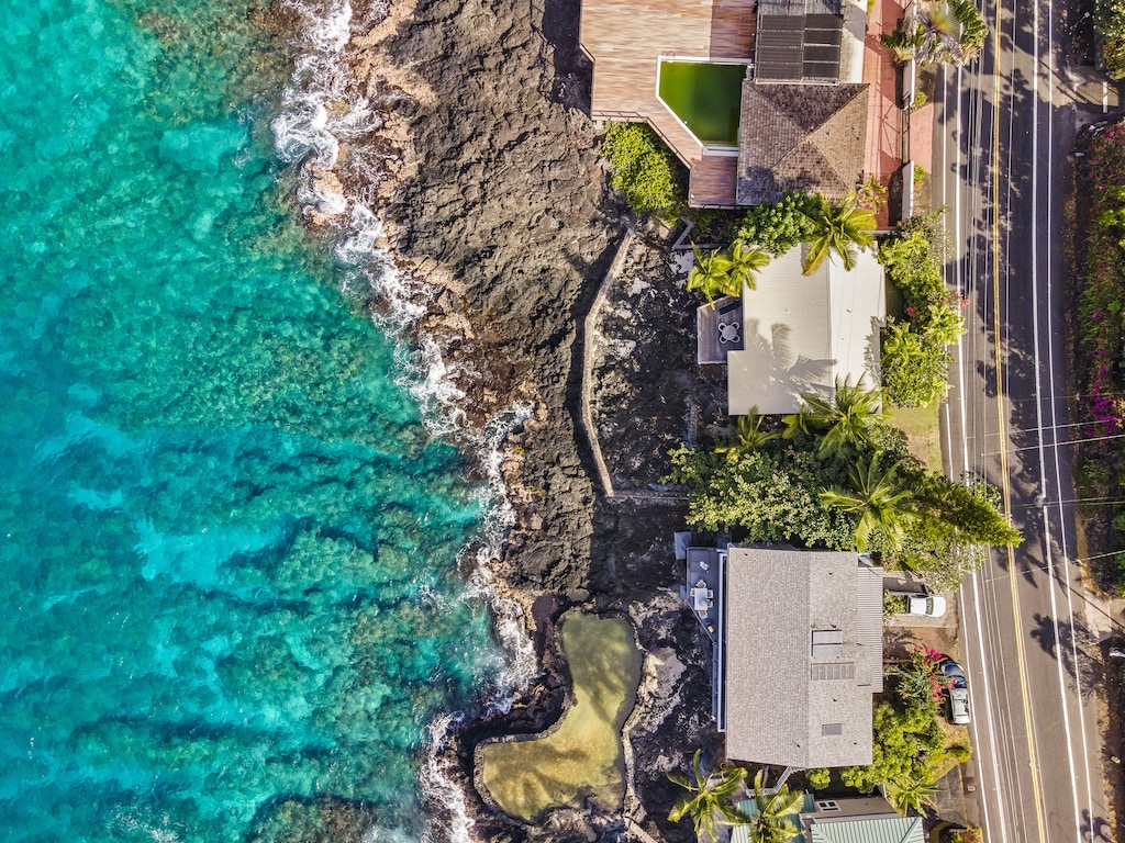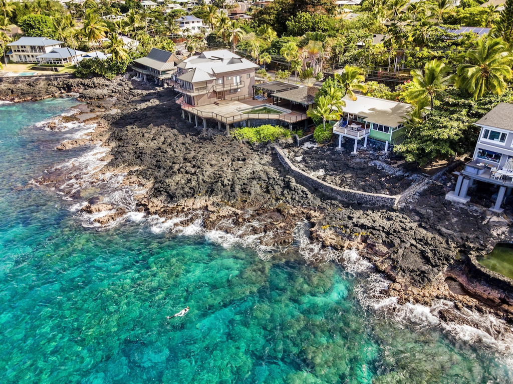 its spectacular location at the edge where the pacific ocean meets the Kona