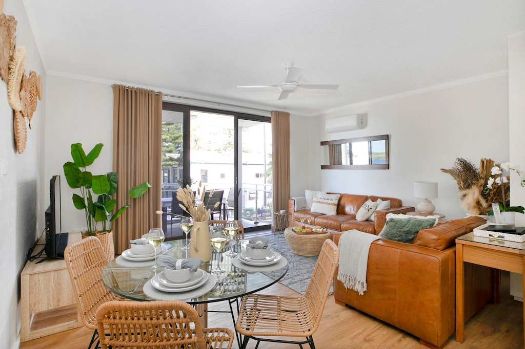 St Tropez Beachside Luxe boasts 2 generously proportioned bedrooms also decorated in soothing tones, a sleek, modern, fully equipped kitchen, a stylish and comfortable open plan living area and an undercover balcony with outdoor setting and elevated view. Enjoy lunch with cool coastal breezes on the balcony which is shaded when the sun is at its highest. It is also a great spot for late afternoon drinks when the sun swings back around with its final rays of the day spreading a golden light throughout the unit.