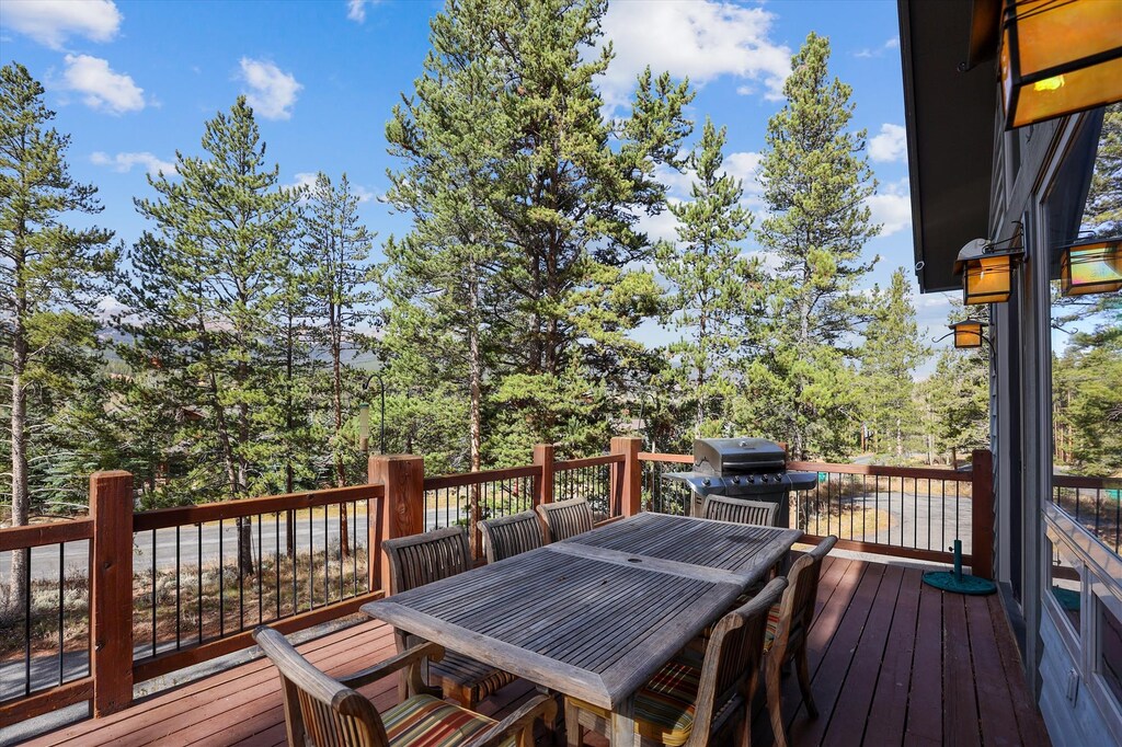 spacious main-level back deck offers a place to dine alfresco on the outdoor