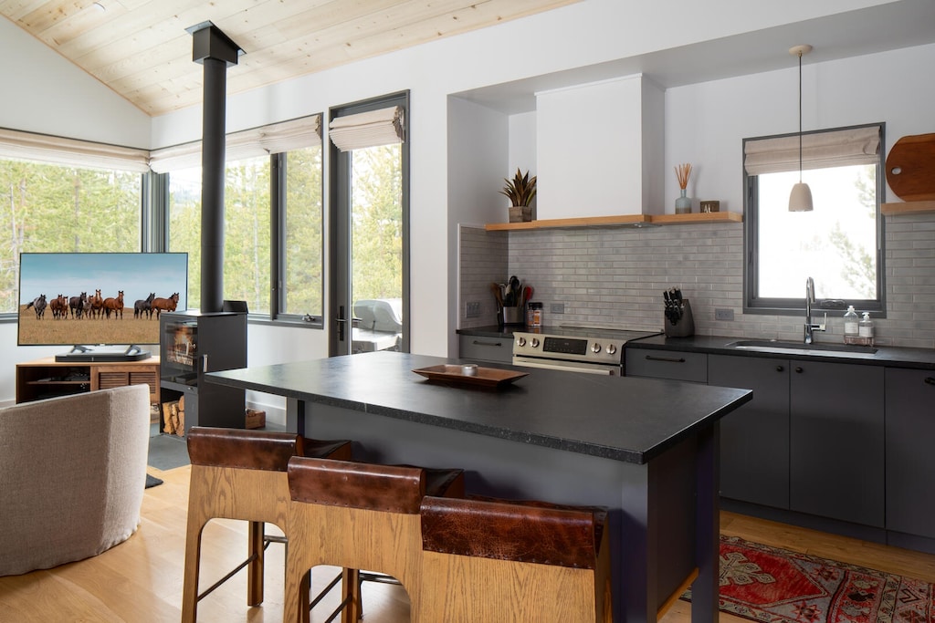 Peak and Fan Mountain from every room. This cabin features an open floor plan