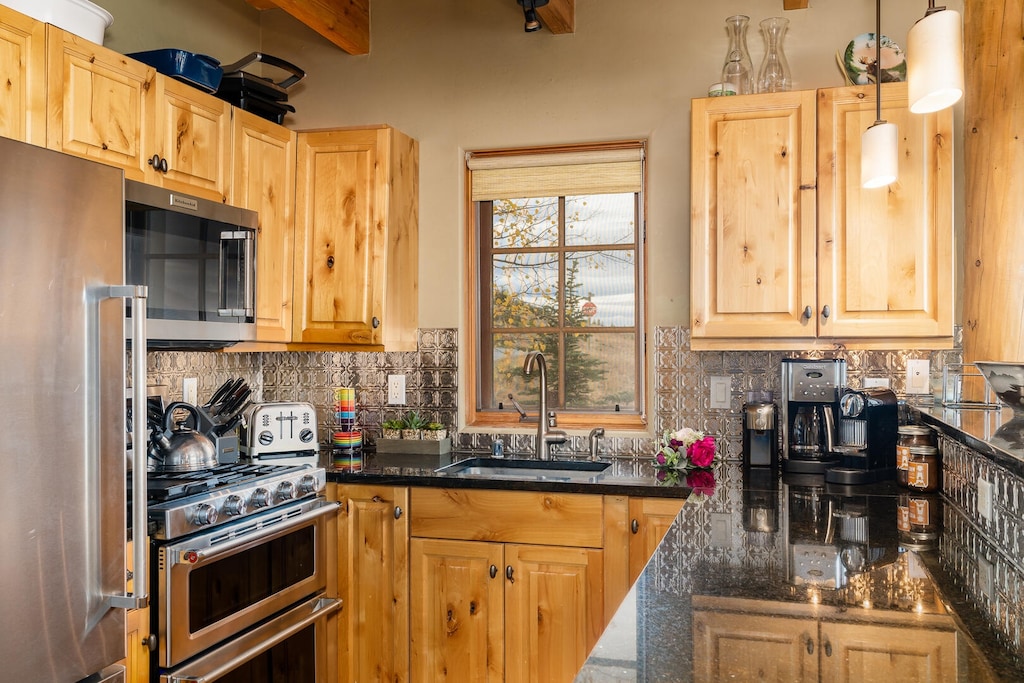 includes a fully equipped kitchen that has everything you need from a crockpot