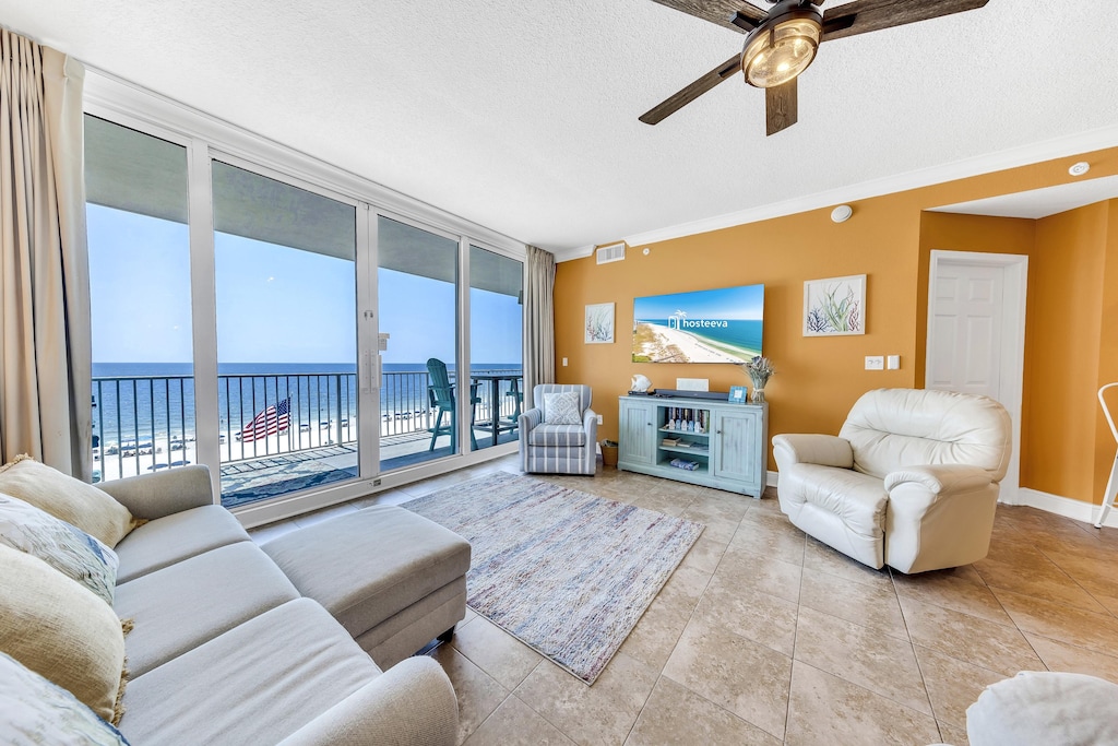 Bright orange accents and cool sea breezes await you at this enticing beachfront condo. Filled with special touches, this beach escape is set up perfectly for you and your group.