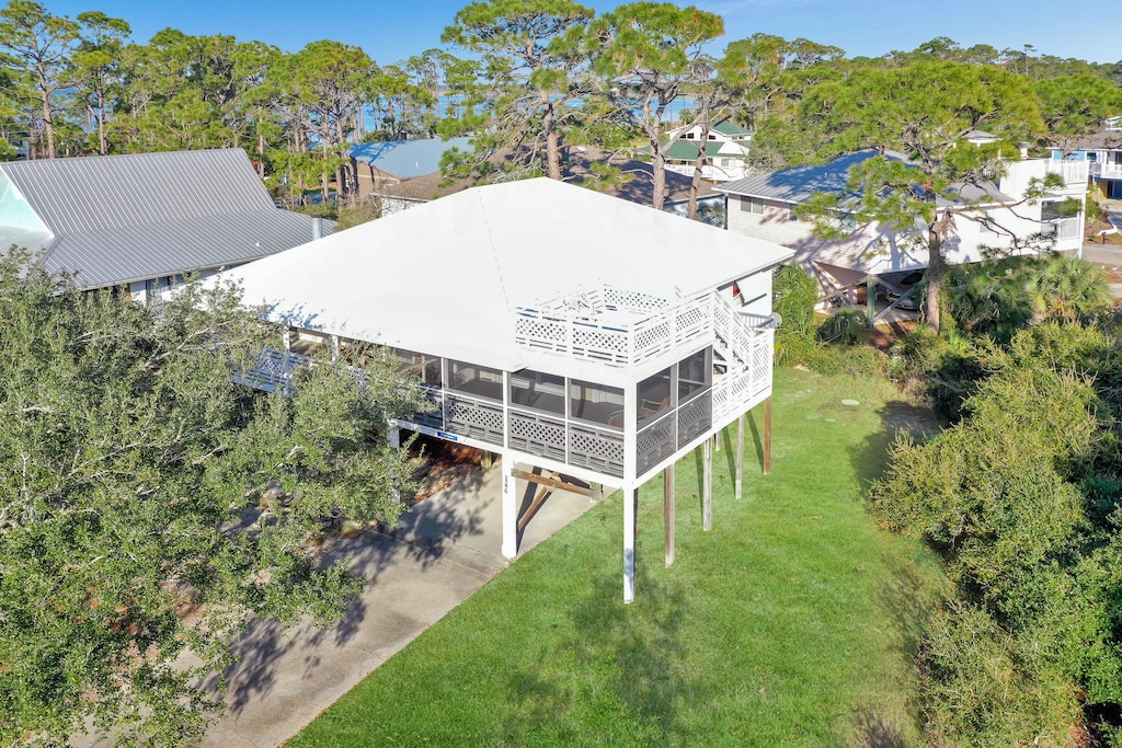 Woofs and Waves is located in a quiet beachside community, The Boardwalk at Cape San Blas, situated on the southern end of the peninsula. The focus of the property owners is to preserve the natural vegetation of the community which is very apparent when you pull into the drive. Located beachfront in the neighborhood is a community pool as well as a gazebo area.
