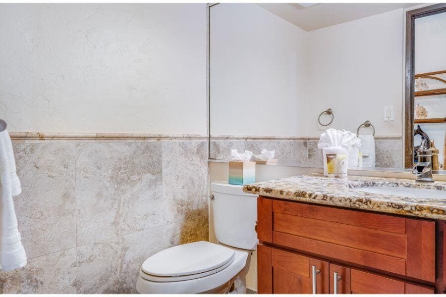 1-bedroom, 1.5-bathroom layout • Sleeps up to 2 guests • King bed in master