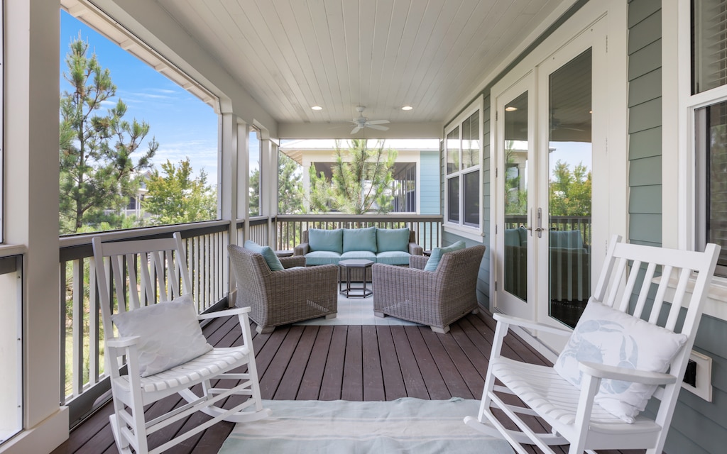 You’ll love the spacious outdoor screened porches on the first and second floors, with ceiling fans, rockers, with comfy seating. Both porches overlook a beautiful green space.