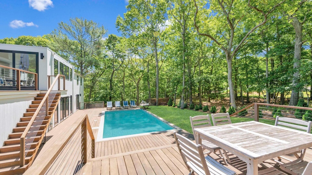 The exterior of the property is just as impressive as the interior. Total privacy and amazing water views of Gardiners Bay make for a truly magical experience. The expansive deck offers the perfect spot for sunbathing and taking in the stunning surroundings. Take a dip in the private pool or fire up the gas BBQ for a delicious summer meal.