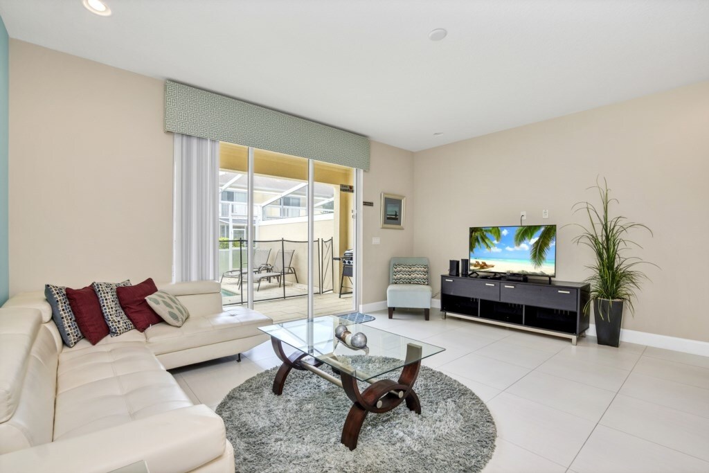 In the living room you will enjoy the comfortable leather sofa whilst watching