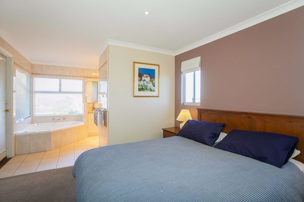Downstairs, another three bedrooms with a separate bathroom can accommodate the kids and another couple, with a queen room, twin single room and double bunk room (4 beds). There is also a separate downstairs entertainment/activity area ideal for kids.