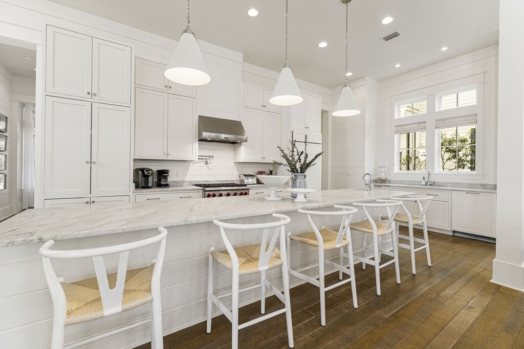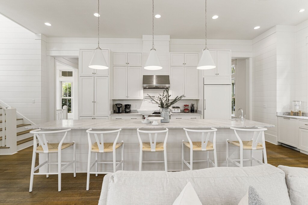 \- Stylish dining room seating for 8 guests and bar stool seating for 5 guests