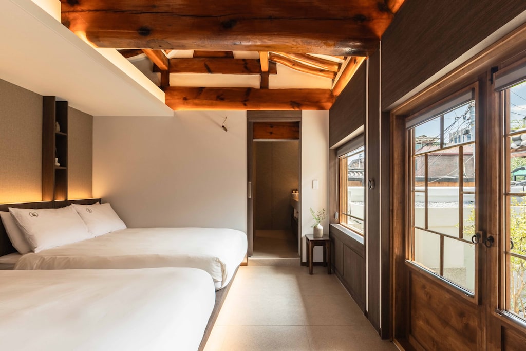Wake up to a fresh morning with a picturesque view of the Hanok through the main bedroom’s windows, and enjoy a peaceful, memorable stay in this charming retreat.
