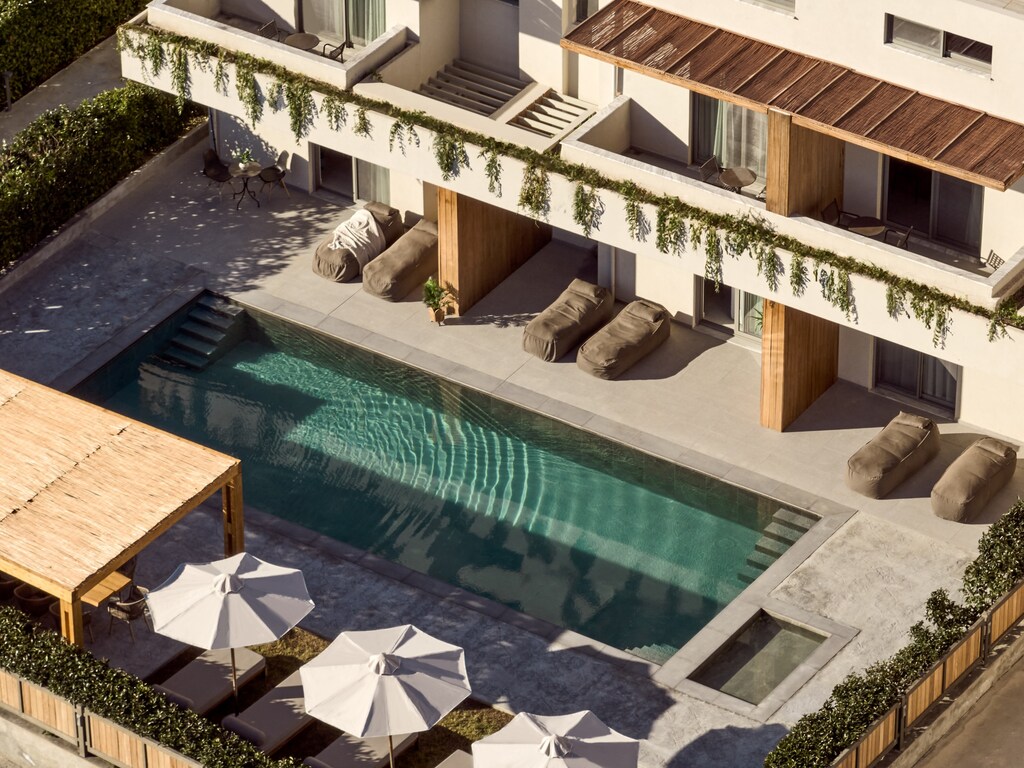 Three Premium Suites (Kyma Suite, Ammos Suite, Sea Suite) each with a separate entrance & direct access to the pool area. • Each Suite features a living Room (featuring a 32’’ Smart TV) & Dining area & fully equipped Kitchen with small fridge, and a folding sofa that can welcome two more guests • Each suite feature a Bedroom with King Size bed (1.80x2.00) & en suite bathroom with walk in shower. • All bedrooms have access to the back yard * no views. • All suites lay on the same ground floor and have direct access to the pool • A Laundry room featuring a washing & drying machine is available to use for all guests, at the ground floor in a separated room.