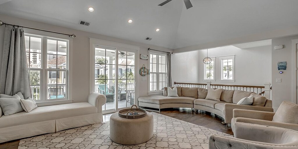 Located in the premier neighborhood within the confines of North Beach Resort & Villas, this beautifully appointed four-bedroom, three-and-a-half-bathroom home has everything you need to enjoy a truly extraordinary vacation, including a fully equipped kitchen, washer and dryer, two-car garage, and covered patio in the front of the home. The bedding arrangement is two king, two queens, and 1 full. This unit accommodates 10 people.