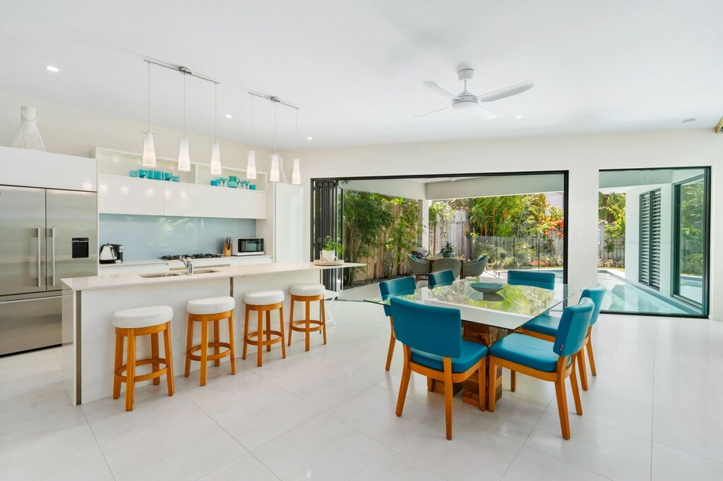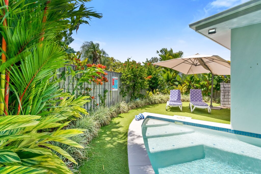 A tranquil, private entry sets the scene for the ambience and layout of this lovely property, with high ceilings, an abundance of natural light, and elegant décor and appointments defining the expansive interiors. The floorplan features three good-sized bedrooms, including a large master with ensuite and direct access to the outdoor space, a beautifully appointed kitchen with gas cooking, island bench and quality appliances, and the flexibility and convenience of spacious open plan living and dining. Bi-folding doors connect the interiors to the delightful outdoor entertaining area overlooking the inground pool and lush private garden, while a leafy central courtyard provides an inspired place to read or just enjoy a morning coffee. Set within the sought after Ocean’s Edge estate, this private, well-positioned property is walking distance from the beautiful beach, and the vibrant Palm Cove café and restaurant precinct.