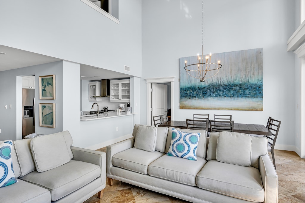 Experience unparalleled luxury in this stunning Lasata Penthouse, a top-floor corner suite at Sandestin Golf and Beach Resort. This 2-story condominium features 4 bedrooms and 6 bathrooms, comfortably accommodating up to 12 guests. Revel in breathtaking views of the Choctawhatchee Bay from the expansive curved balcony, perfect for sunset gatherings. Entertainment reaches new heights with an oversized curved balcony, ideal for hosting gatherings or simply relishing the breathtaking sunsets over the bay. Inside, indulge in the finer details, from the travertine floors to the granite countertops. The spacious living area, complete with a wet bar, sets the stage for relaxation and upscale living. With soaring ceilings and floor-to-ceiling windows, soak in spectacular views of the Choctawhatchee Bay at Sandestin Golf and Beach Resort! Located near vibrant dining and entertainment options, this is your ideal getaway in Florida’s paradise.