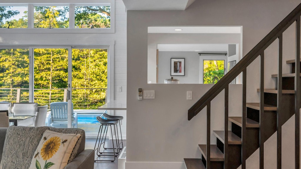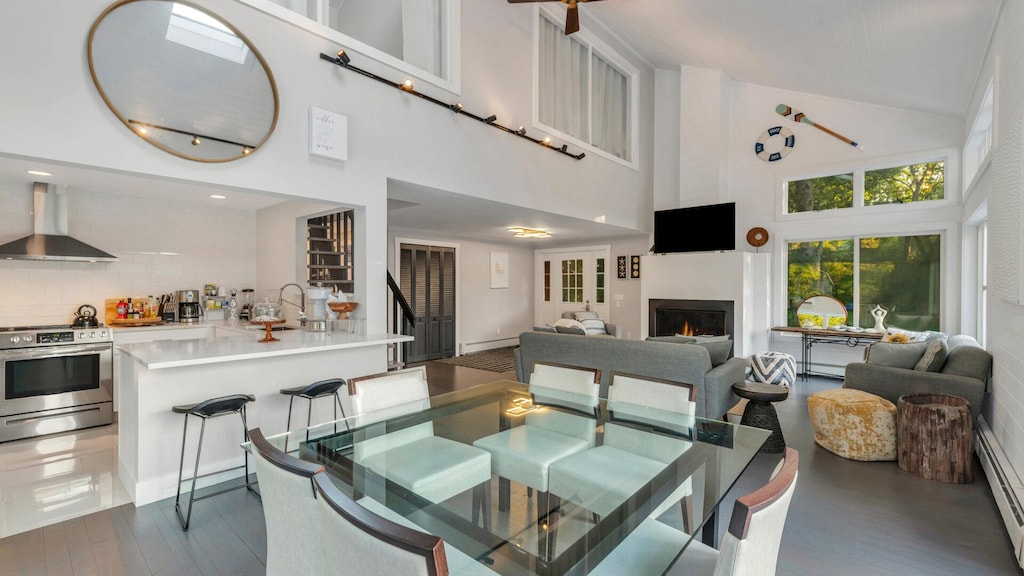 Upon entering this charming vacation home, you’ll be captivated by the generous open layout, bathed in an abundance of natural light. The open-concept design ensures an easy flow from the spacious living room, adorned with comfy couches and an impressive entertainment center, to the elegant dining room. The adjacent kitchen, featuring top-of-the-line appliances and a breakfast bar, is a delight for any home chef. Large sliding doors provide easy access to the back deck, allowing you to take in amazing water views while enjoying your morning coffee or evening wine.