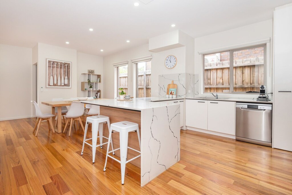 The effortless floor plan is light, airy & open, with the living/dining zone merging seamlessly with a modern kitchen, while an upper-level retreat is a private sanctuary for kids & teenagers.
