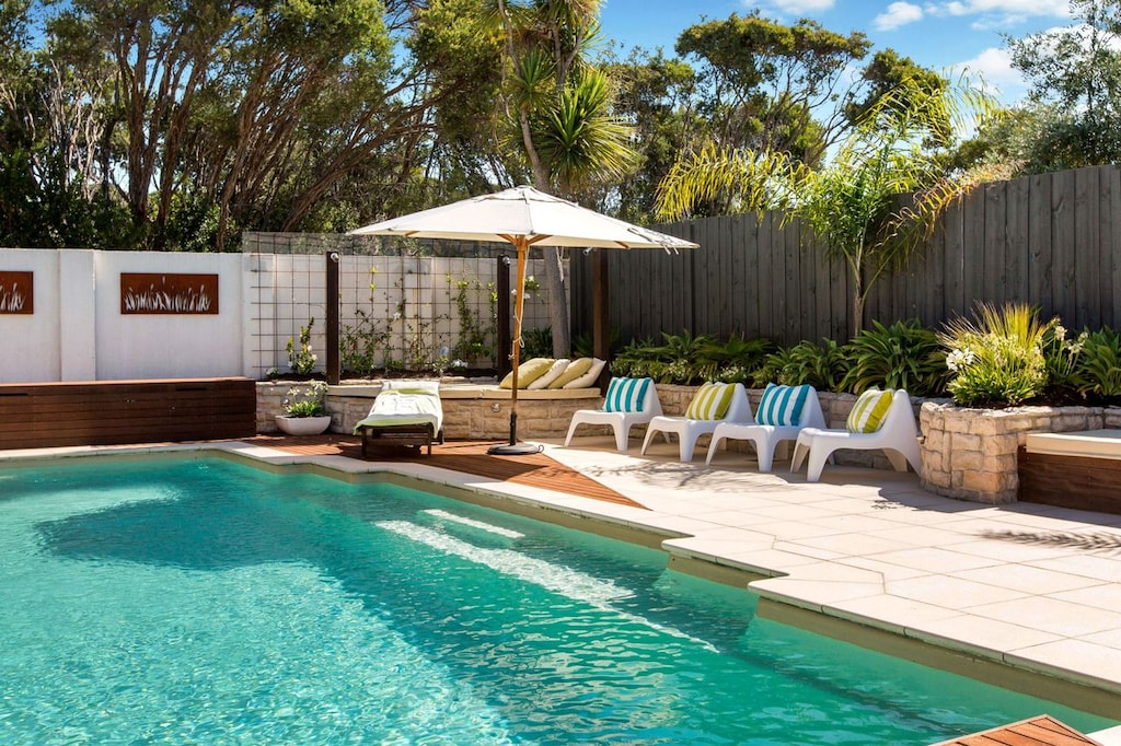 Enjoying privacy behind tall fences, the pool area provides fabulous space for lazing by the pool and deck chairs or on a selection of covered or uncovered day beds.