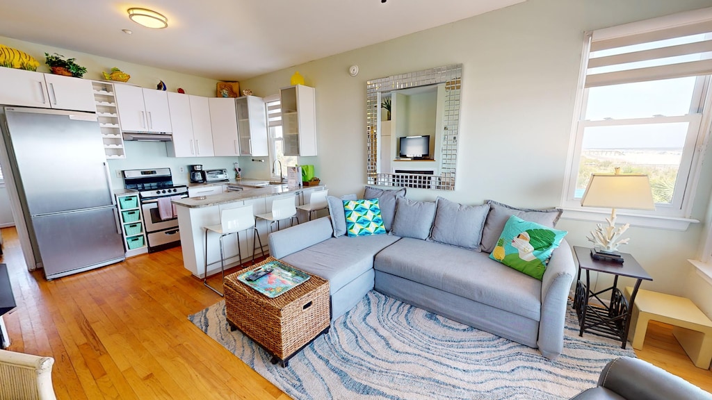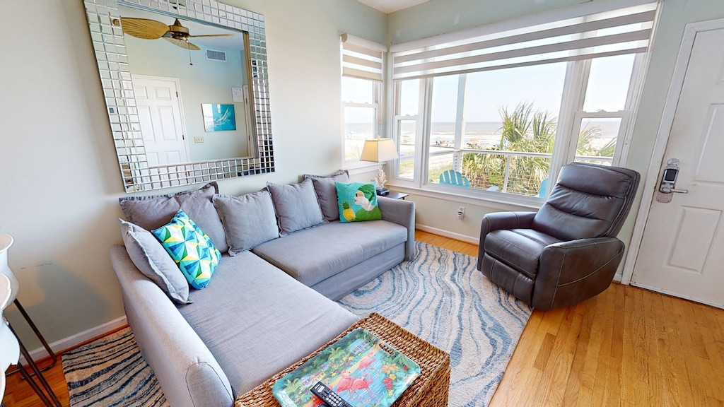 One of Folly’s Best! The One is a comfortable and clean 1 bedroom condo located on the first floor of a 3 story elevated complex with breathtaking oceanfront views where the beach is literally your front yard. The building was recently renovated to feature new decking and upgraded A/C units. Hardwood floors throughout, TVs in both the living room and bedroom, and access to a shared washer/dryer too! Drifting off to dreamland on a comfortable king-size mattress will be sure to rejuvenate you for your next day out on the beach. Enjoy a beautiful morning sunrise from the shared balcony followed by front-row seats to watch the dolphins play while enjoying your morning coffee. The night sky is perfect for stargazing and listening to the ocean waves crash onto the shore. You can park your car in the reserved parking space the entire time you are here because everything you’d ever need is within easy walking distance on Center Street. The One allows up to 2 well-behaved, house-broken, flea-treated dogs with approval. Please include the breed and size of your dogs when you inquire. Folly Beach Suites shares laundry and HVAC with the neighboring unit, a locked door leads to the adjoining laundry room. Please keep temperatures at recommended levels and remove clothes from the washer/dryer as soon as possible. While we manage this property we do not manage the maintenance of this building. All photos are current and accurately depict the property. Please book with confidence. This property is licensed by the city of Folly Beach as a vacation rental - License Number LIC001274. Because of the potential for fraud, we would not recommend booking a property not licensed by the city of Folly Beach as a vacation rental.