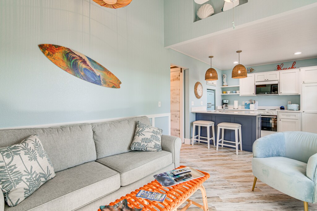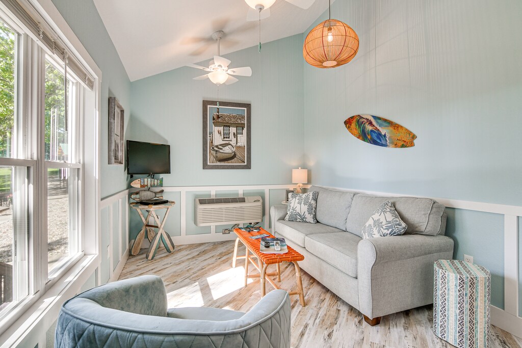 PROPERTY HIGHLIGHTS: Smart TV, open floor plan, deck w/ seating area, charcoal grill, coastal decor