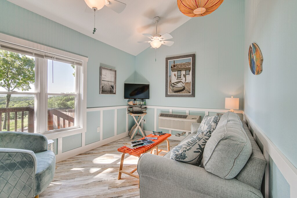 Take in breathtaking lake views as you sip your morning coffee when you stay at 'The Seahorse Cottage,' a 1-bed, 1-bath vacation rental. Boasting a quiet location, surrounded by towering trees and offering easy access to Table Rock Lake, this Shell Knob cabin is perfect for a serene couple's getaway or an exciting solo adventure. Take advantage of the nearby community amenities or venture out to explore popular attractions, like Dogwood Canyon Nature Park, Cosmic Cavern, and Silver Dollar City!