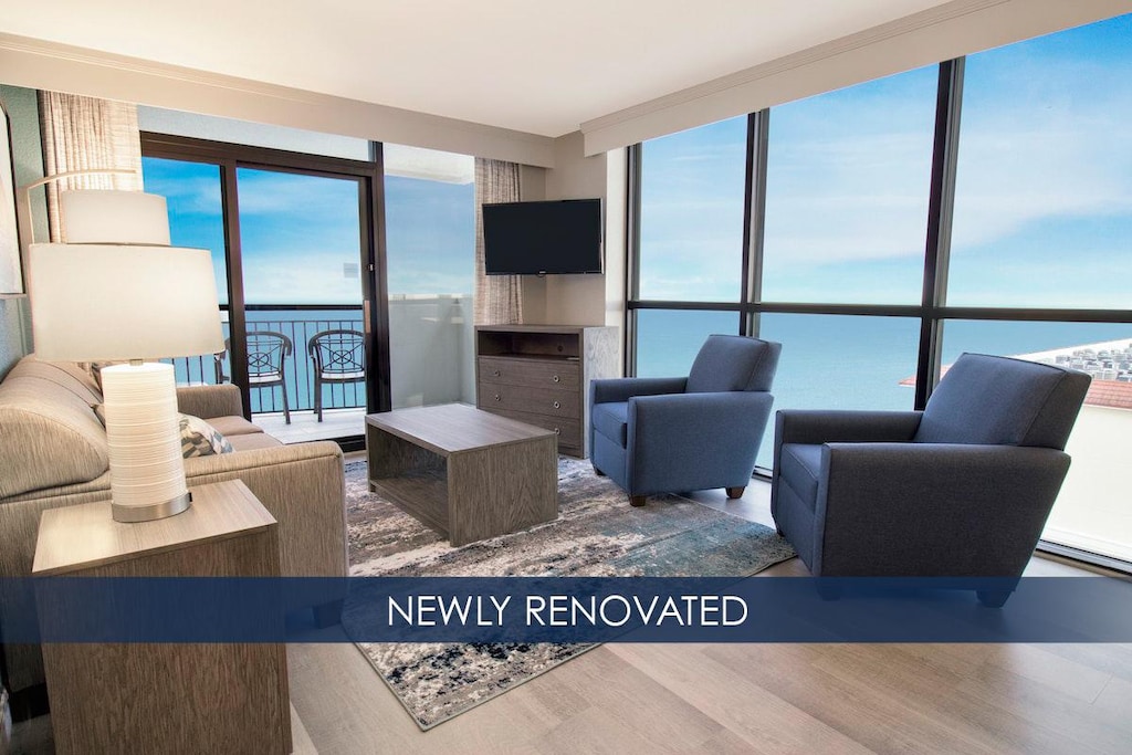 NEWLY RENOVATED - Enjoy the beauty of the Atlantic Ocean from the oceanfront balcony of this two-bedroom, two-bathroom condo. This unit comes with two queen beds in each of the bedrooms, a sleeper sofa, HD flat screen TVs, a full kitchen with a stove, refrigerator, microwave, basic cookware and utensils, a washer and dryer, and your own private whirlpool tub.