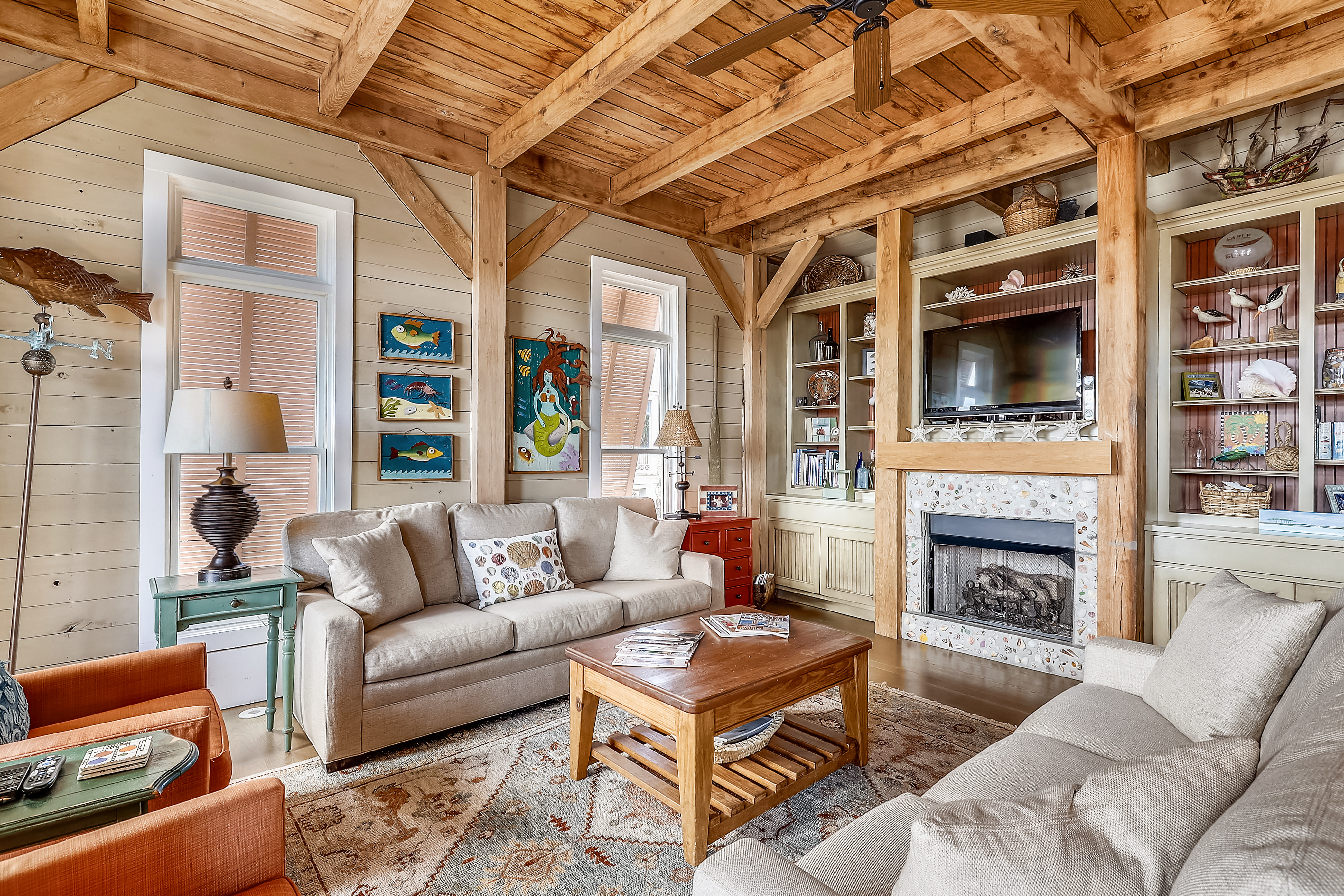Let your mind be at ease in the sweet ocean breeze at the Sugar Shack, a unique and gorgeous four bedroom, four bathroom home in Destin Pointe. Upon entering the home you will come to the open Living Room and Kitchen. The Kitchen has a large granite island that overlooks the Living Room and Dining Area, plenty of granite counter space, and all the pots, pans, silverware, dishware, and appliances needed to prepare your favorite meal. Adjacent to the kitchen is a Dining table set for six in the Dining Area. Next comes the Living Room, which boasts two couches, two lounging chairs, a fireplace, and a flat screen HDTV. The Kitchen, Living Room, and Dining Area all share a set of French doors leading to a grand deck. This large deck has a picnic table for outside dining, as well as plenty of additional outside seating. The deck offers a panoramic view of The Gulf of Mexico, Destin’s East Pass, and the lakes of Destin Pointe. The main floor is also home to a full bathroom one of the Guest Bedrooms. The Guest Bedroom on the main floor has a Queen Bed and private access to the front porch and entrance of the home. Traverse up the stairs to the second floor of the home and you will find three additional bedrooms. The first bedroom you will come to on the second floor is the second Guest Bedroom. It comes with a Queen bed, a connected bathroom with a walk in shower, and French doors leading to a large private balcony. The Private balcony has a wooden swing attached to its ceiling and offers a stunning view of the Destin Bridge. The other two bedrooms on the second floor are both Master Bedrooms. The first Master Bedroom has a King Bed, a flat screen HDTV, and a DVD player. The adjoining Master Bathroom has a walk in shower. The second Master Bedroom has a King Bed and a TV. Its adjoining Master Bathroom has a bathtub/shower combination. Both of these Master Bedrooms share a deck that’s home to arguably the best views of the house. The deck has two swings and two rocking chairs, along with a panoramic view of The East Pass, The Gulf of Mexico, and one of Destin Pointe’s Lakes. This home sleeps eight guests without the need of a Sofa Sleeper. Amenities include a washer and dryer room with full size washer and dryers, a storage area under the home for beach essentials, wireless internet access, and complimentary beach service (while in season). Everything in this home is of a timeless quality, including its views. Book this home today and come see why so many repeat guests have found their home away from home in the Sugar Shack. Home does not come with a grill but you are welcome to use the grills located by the Magnolia House condo pool area.