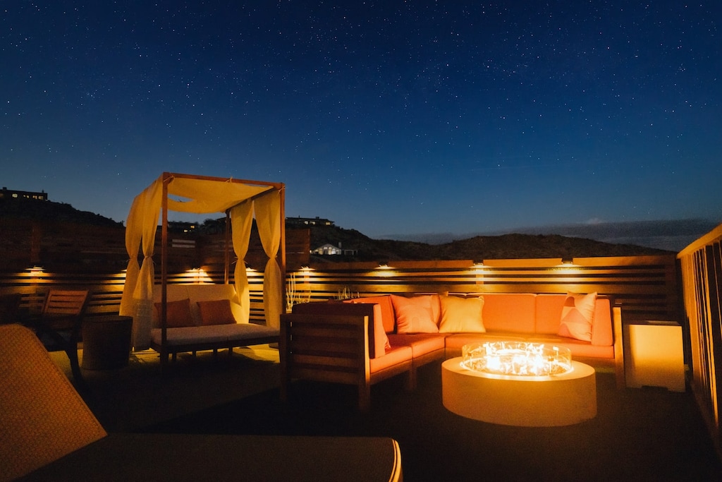 Our deck is unmatched and truly what makes our house one of the most sought-after houses in the area. The miles of views in each direction provide one-of-a-kind sunrises, sunsets, and everything in between. Grill some burgers & veggies with your friends and family and enjoy them on our outdoor dining table. Relax and read a book while lounging on the daybed, or unwind around the cozy fire pit. We have lounge chairs so you can catch some sun, or might we suggest a yoga session to the backdrop of the beautiful desert.