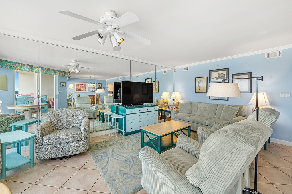 Comfortably accommodates 6 guests with 1 King, 1 Queen, and 1 Queen Sleeper Sofa.