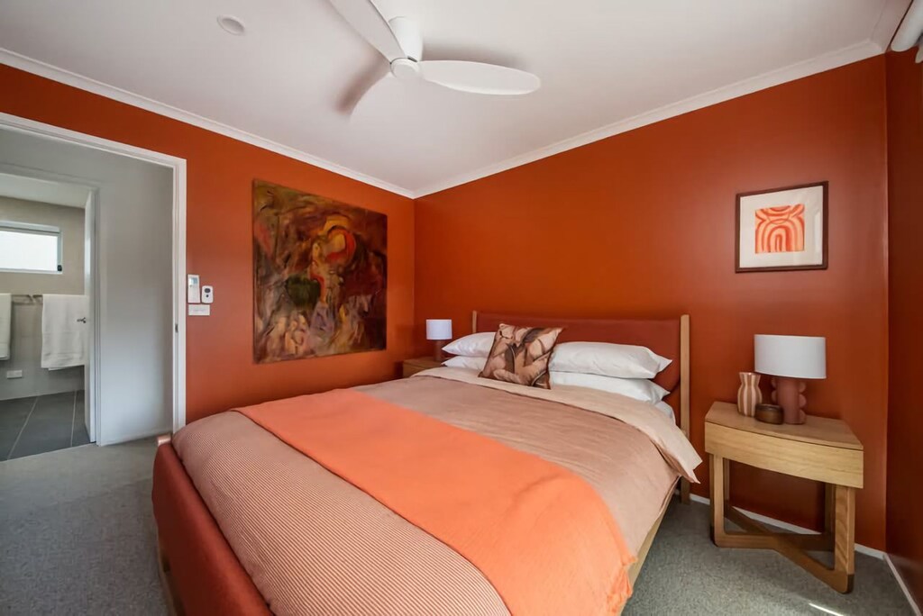 Bedroom 4: D/S: 1 x Queen Olive Bedroom + Ensuite (vanity/shower/ toilet) + Robes + Carpet + Block out Blinds + Reverse Cycle Air Conditioning and Heating + Access to Deck and garden (sleeps 2)
