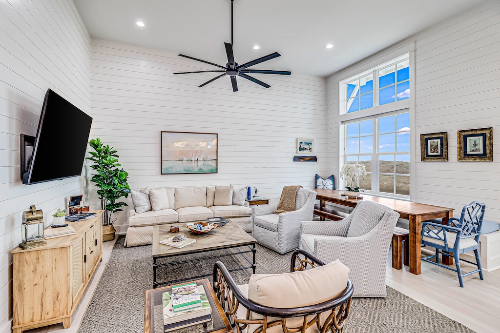 Newly constructed, this two-story townhome provides plenty of indoor and outdoor living space with natural light for gathering with your favorite people. This home is generously furnished and fully equipped for all your vacation needs. The chef’s kitchen has more than enough cookware and dishware for entertaining in the house or grilling and dining on the spacious front patio. A farmhouse sink, gas cooktop, and enormous island make cooking a breeze.