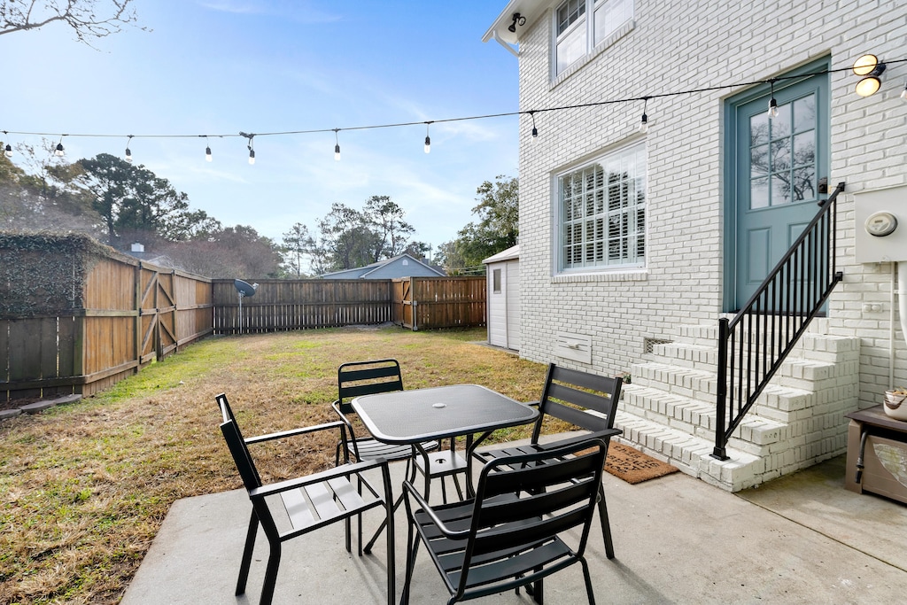 On the first floor you will find the spacious living room, updated kitchen, dining area and half bathroom. The living room features plenty of comfortable seating, a large flat screen TV, and a chest full of games for you to enjoy during your stay. The dining area is just off the living room and features a large table with seating for up to six people! The proximity to the kitchen makes this the perfect space to entertain, and host family or friends for dinner! The kitchen has been recently updated and features stainless steel appliances, plenty of counter and cabinet space, and a small table perfect for enjoying a morning cup of coffee or working from home! You can access the outdoor patio and back yard from the sliding door in the kitchen. The yard is fully fenced in. This is the perfect place to relax and enjoy the beautiful Charleston weather! Also on the first floor is a half bath for your convenience as well as the full size washer/dryer.