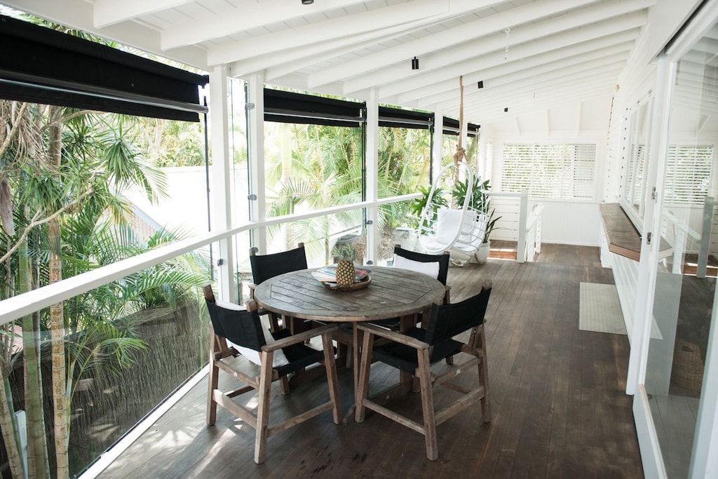 Drift off in the enchanting attic-style bedroom, indulge in the luxurious built-in bath, and unwind in the all-weather covered outdoor sanctuary complete with elegant dining setting and sumptuous daybed. For wellness enthusiasts, 2 yoga mats await your morning practice. The villa boasts a generous private inground pool surrounded by lush gardens, sun loungers, and a refreshing hot/cold outdoor shower. Located perfectly in central Byron Bay, guests can simply cross the road to Bay Grocer for artisanal coffee and gourmet provisions, stroll to town within minutes, or enjoy a leisurely 10-minute walk to the world-famous Main Beach. 2 vintage-inspired bicycles are provided for exploring Byron’s scenic surrounds in authentic local style.