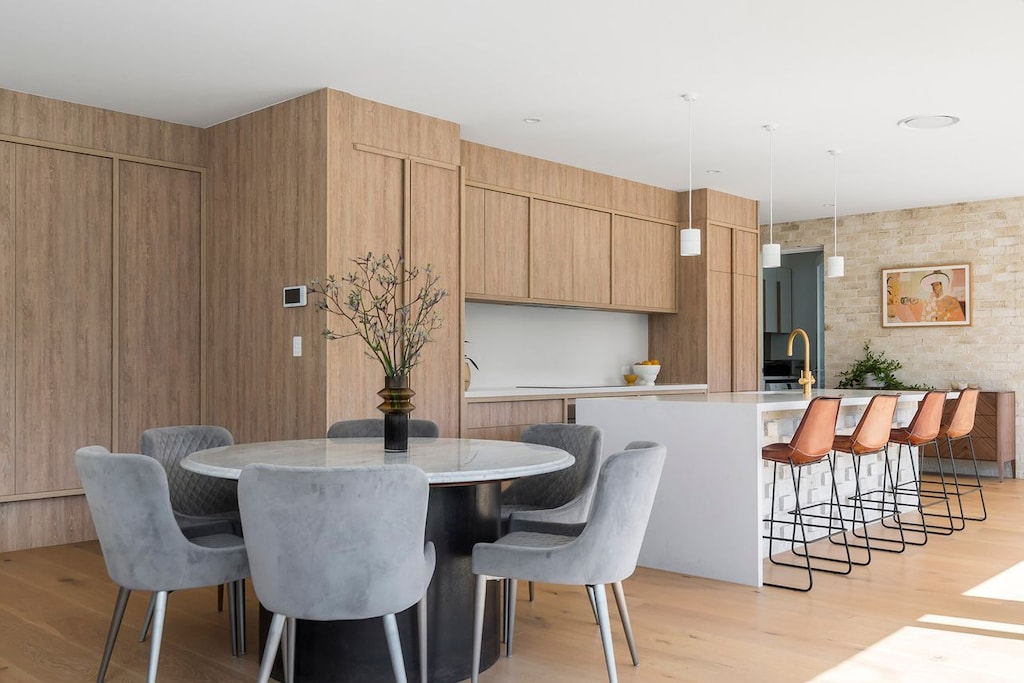 From the kitchen, find a round dining table with plush velvet seats that will keep you at the table maybe even more than the food - depends on who’s cooking.