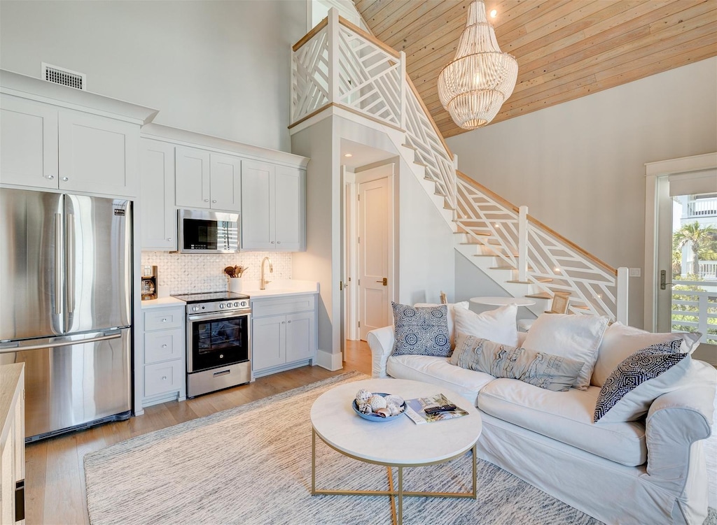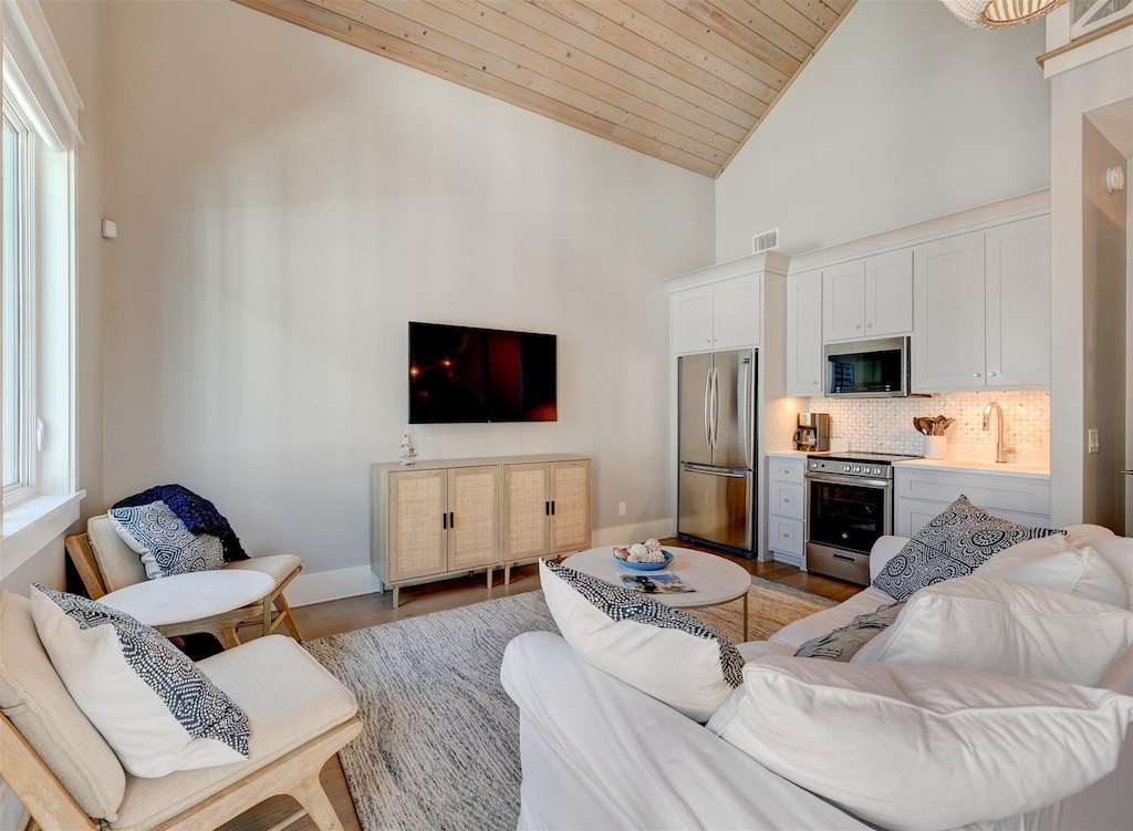 ✔ Spacious Open-Concept Living Area – Cozy sitting area with HDTV and dining for two