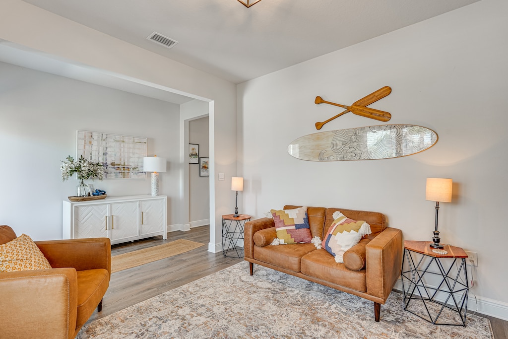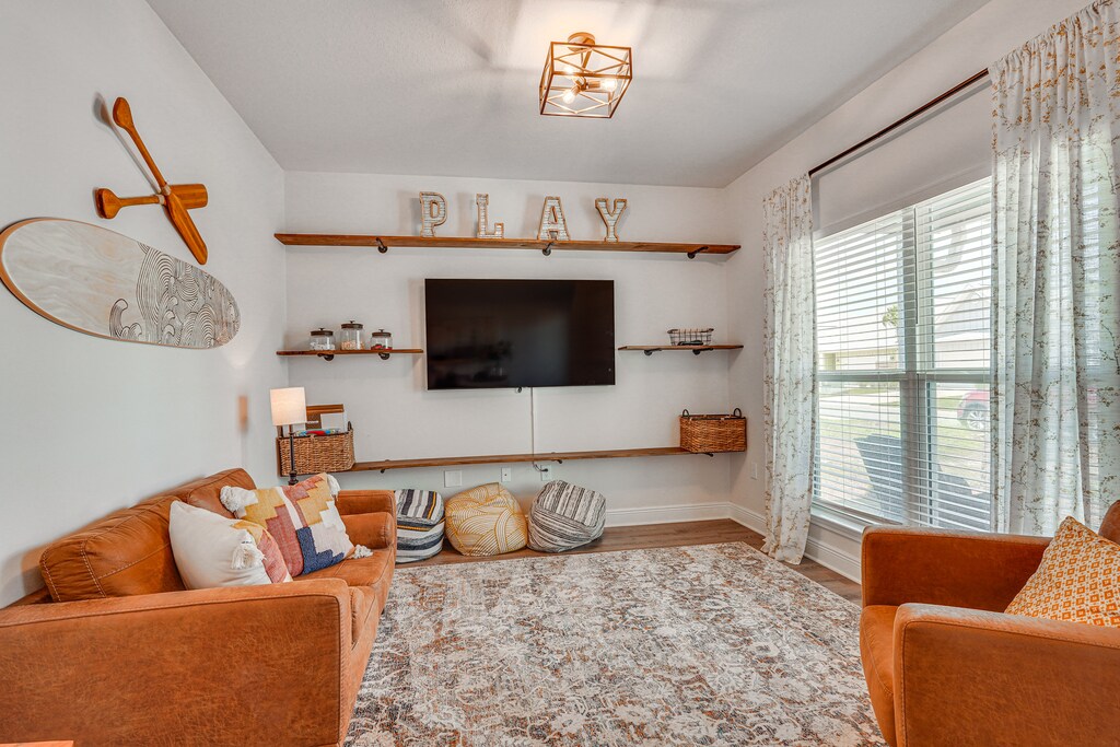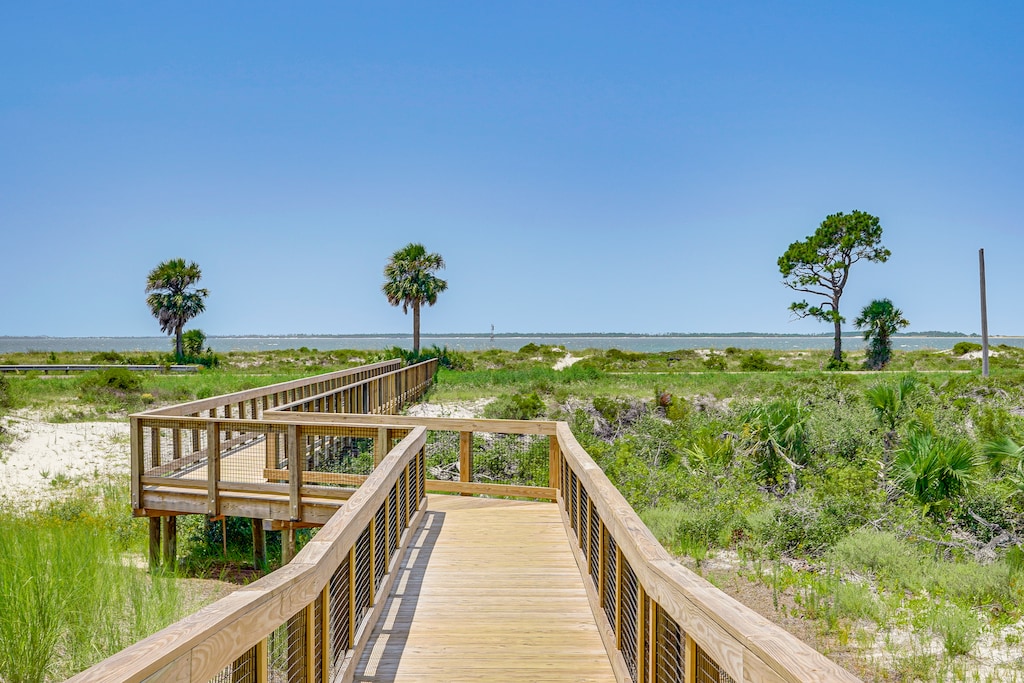 White-sand beaches are just beyond your backyard when you stay at this Port St. Joe vacation rental. This 5-bed, 3-bath home in Windward Beach features a spacious and modern interior with 3 living areas across 2 floors, Smart TVs in every room, and community perks like outdoor pools and beach access just a quick walk away. Your furry friend is welcome, too! Whether you’re shopping at local boutiques or digging your toes into the sand, this getaway on Florida’s Gulf Coast is a great home base.