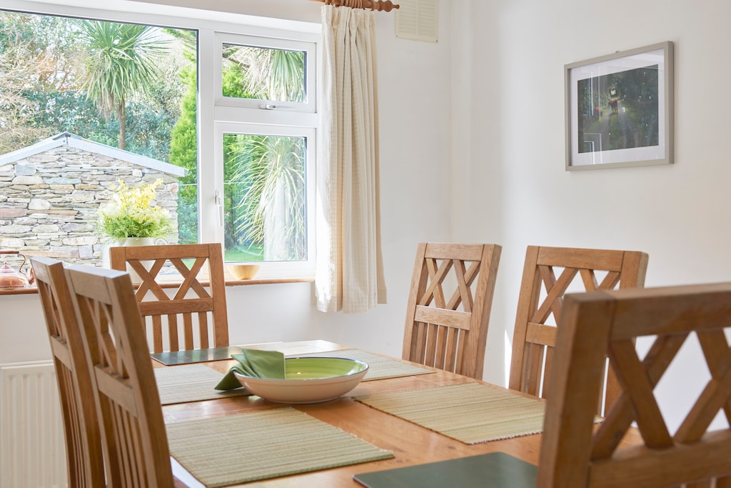 The kitchen is well equipped with everything you will need during your stay. It has a Bosch coffee machine, oven and hob, dishwasher, fridge/ freezer, washing machine, microwave, kettle and toaster. The cupboards and shelves are stocked with all the cutlery, crockery, cookware and glasses you’ll need. There is no tumble dryer but there is a clothes line out the back and a clothes horse for drying indoors.