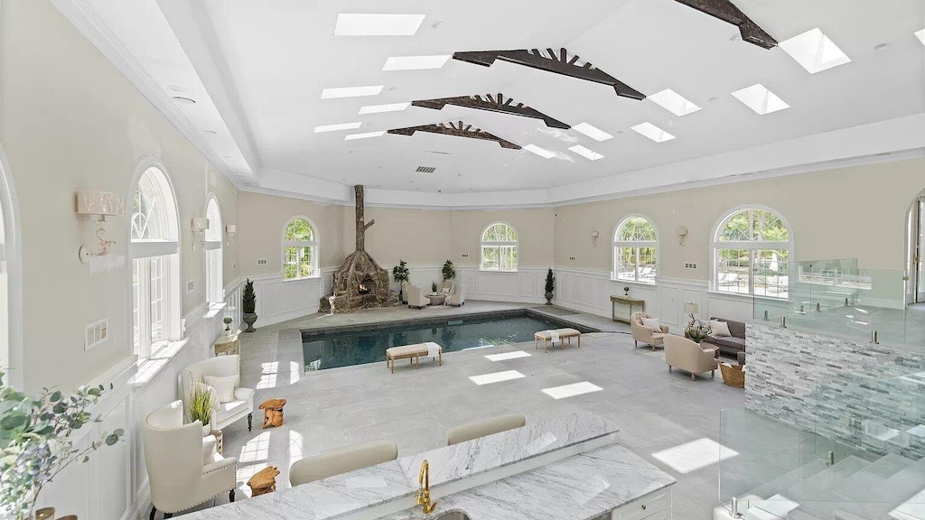 7BR/11BA: indoor and outdoor pools, resort-like spa, hot tubs (indoor and outdoor), sauna, steam room, massage room, gym, putting green, outdoor kitchen and dining area, 5 private acres, office