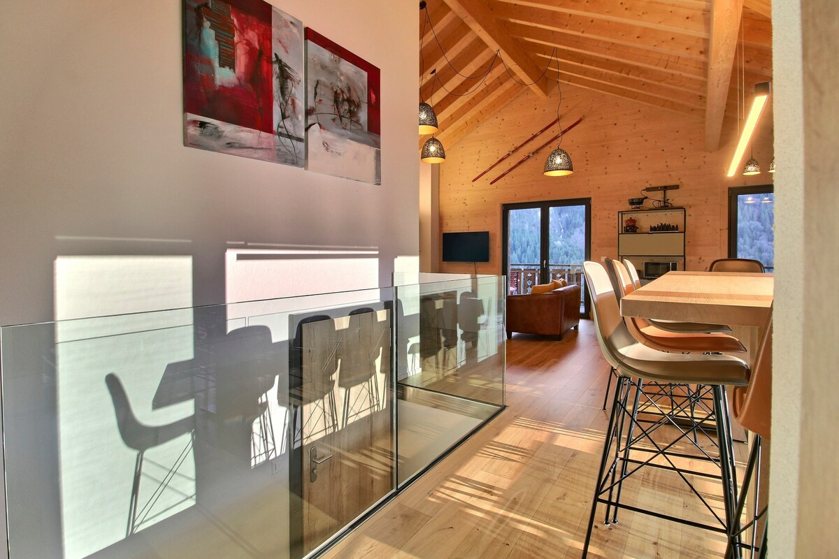 This sumptuous 140 m2 penthouse is nestled on the 3rd floor of the historic train station buffet, completely renovated in 2021. Playing with light and space, the high ceilings and the abundance of natural light enhance the comfort of this beautiful apartment . Its large bay windows open onto a terrace where you can relax while admiring the picturesque village of Champéry, framed by the majestic Dents du Midi and Dents Blanches. (At the 3rd floor, residence without lift.)