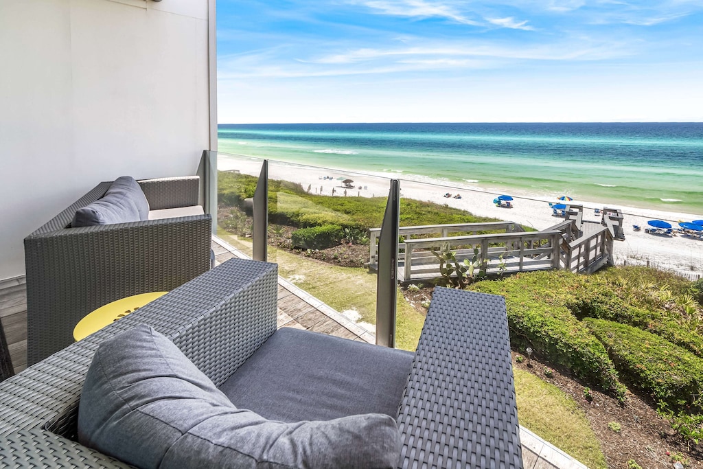 Designer Gulf Front Townhome at Booth Bay! Everything is renovated in the home including spa baths with walk-in showers, smart TVs, and glass balcony wall for unobstructed views. Check out the video of the view! Located close to shopping and dining in Alys Beach, and only 2 minutes to The Big Chill! Hop on the bike and explore all 30A has to offer.