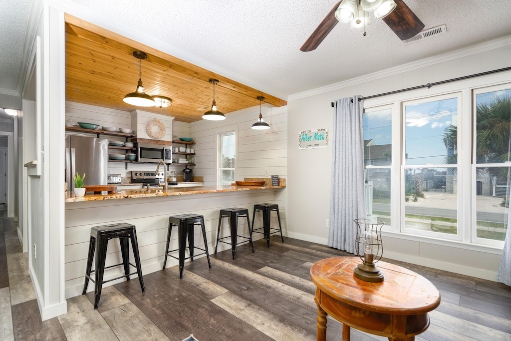 AfterMath is your modern coastal escape—just steps from the ocean in the heart of Garden City Beach. Thoughtfully designed with an open, sunlit layout, natural wood accents, and breezy outdoor spaces, it’s walking distance to local favorites like The Quay, Gulf Stream Café, and the marina. Unwind on the covered deck or lounge by the private pool oasis, complete with a hammock, dining area, swings, and a convenient half bath for easy beachside living.